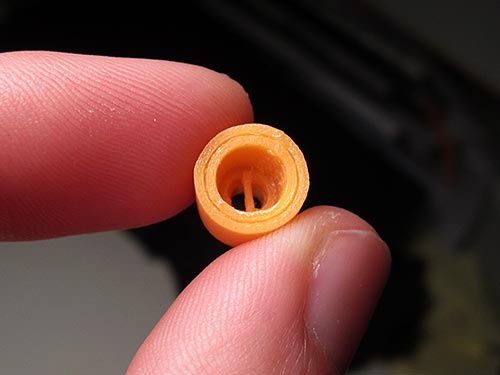 I need three prints to obtain a functional piece. The first is the original, the orange is the functional one. As you can see, the first and second 3D prints look like "melted". I had to reduce the infill.