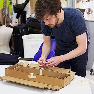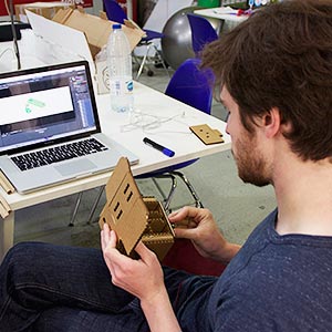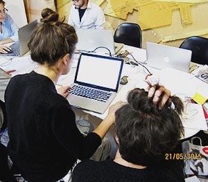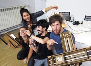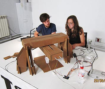 Francesca starts by analysing the file with the design of the frame and the stage, in order to modify the thickness of the cardboard we are gonna use. The file is in Rhino/Grasshopper and should be parametric, but it isn't.