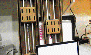 Theo also designs and laser cuts a structure to hold the two axis. Gabriella creates a program using Processing to draw points on the screen and to send the position of these points as coordinates to a text file. Francesca prepares the python file to be able to read the coordinates from an external text file. I search for an easy way to (calculate the time between drops), I found an online tool designed to calculate the bpm of a song, which we didn't used at the end.
