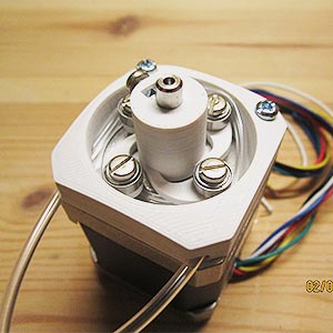 Meanwhile, I look for solutions on how to drop droplets. Ferdi give us the idea to search for (peristaltic pump) on thingiverse, and we found this one. I print it using ABS on the Ultimaker, the first time that I use this machine. I need to send the file three times because of some problems related to make that the first layer sticks properly to the bed of the printer. Solved just by playing with the speeds of the machine.