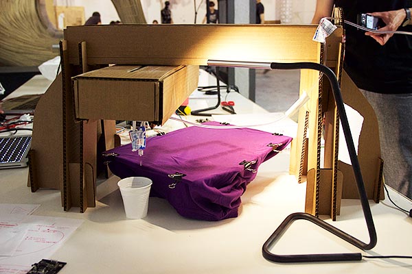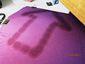 The initial idea for the water printer was to print over a fabric that changes its colour with water. When the water dries, the fabric retrieves its colour. We told to the machine to draw an arrow, and the machine makes it.