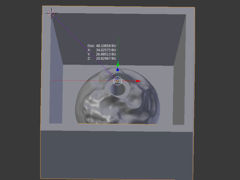 Inside the cube, just in the middle of the piramid's structure, I created a little ball with an easy breakable support.