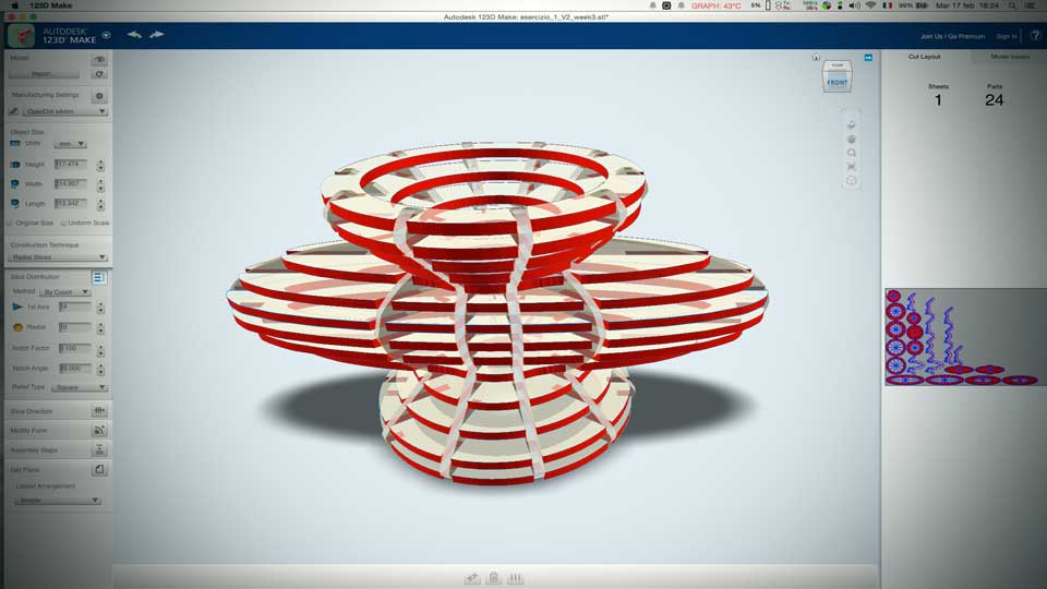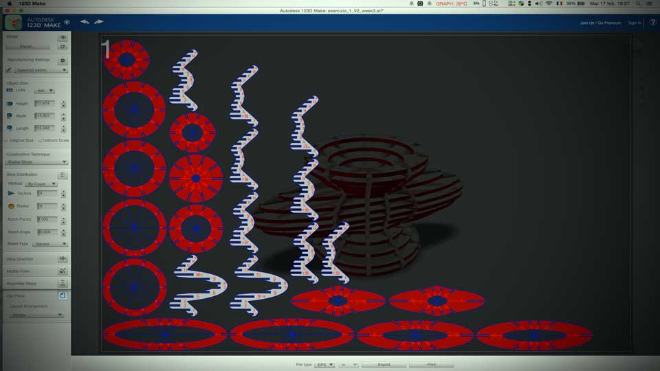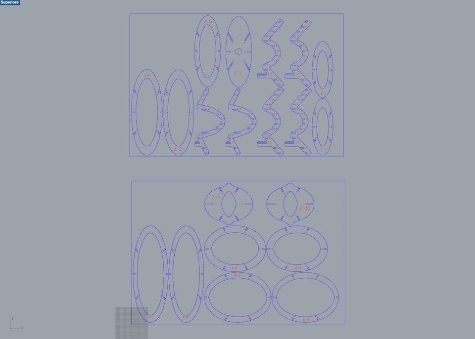 The second step until the fisical realisation of the model is to turn 3D models into 2D build plans and decomposed it in horizontals and verticals slides.