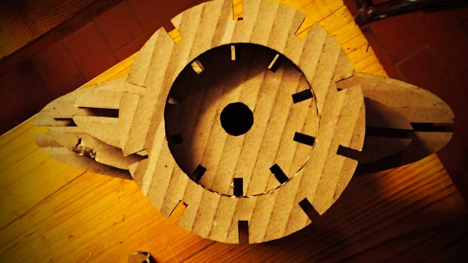 Whit a really analogical system, a rolling pin, I decided to try to flatten the parts of my cardboard structure. --(Please avoid easy ironies respect my Italian origin :-)--