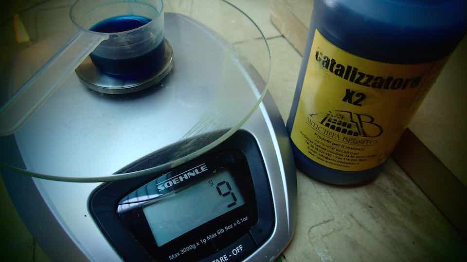 I should point out that the resin produces a positive mold, and even if it was created several days before, it leaves important traces of resin in the rubber.