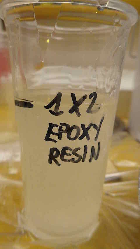 Mix the 2 parts of Epoxy : 2 parts of resin to 1 part of hardener