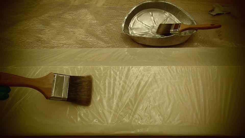 First apply the mixed resin to the structure with a paint brush.