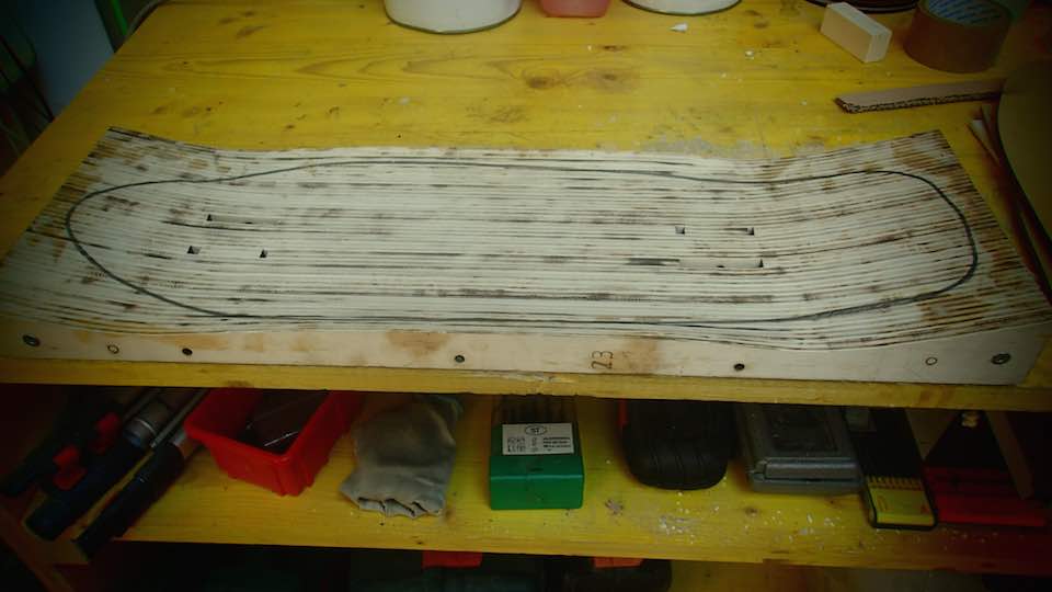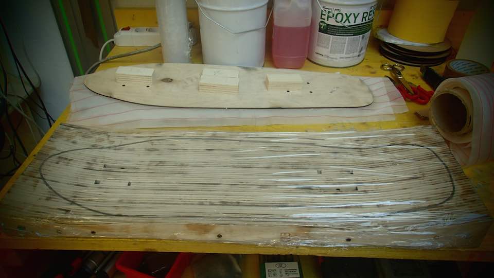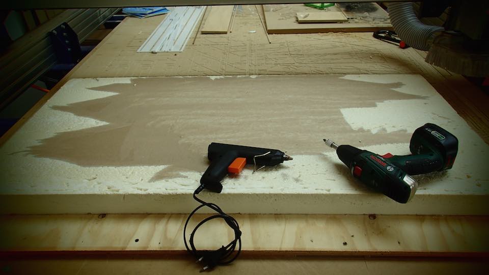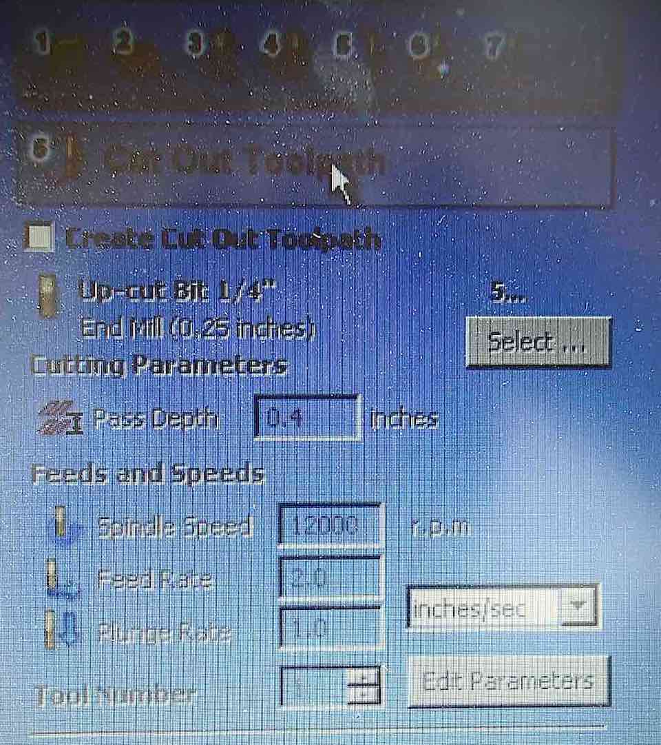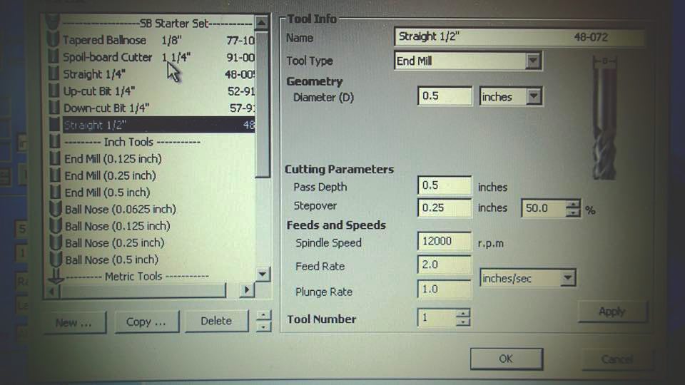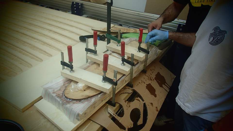 Then fix the polyuretane block in the work table of a CNC machine, with screws and hot glue, set the parameters of Partworks 3D.