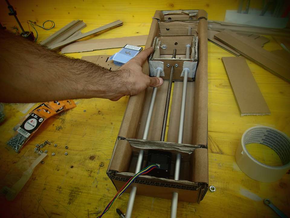 The result is fairly cheap because of the low quality of the cardboard; however the assembled linear stages flow correctly