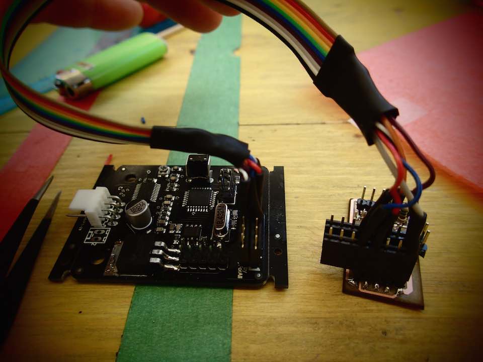 Finally I soldered the 6 pins cable to connect the Fabnet header to the first node