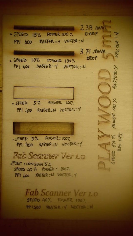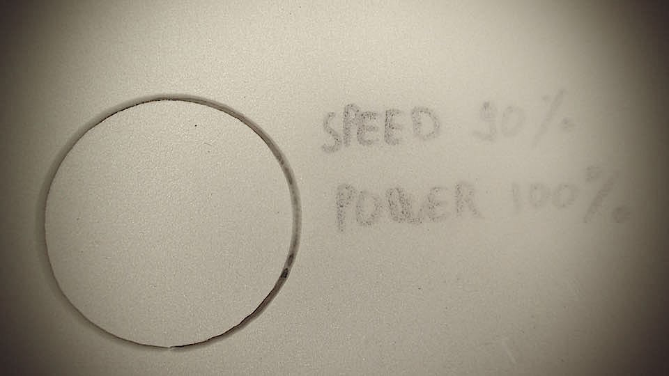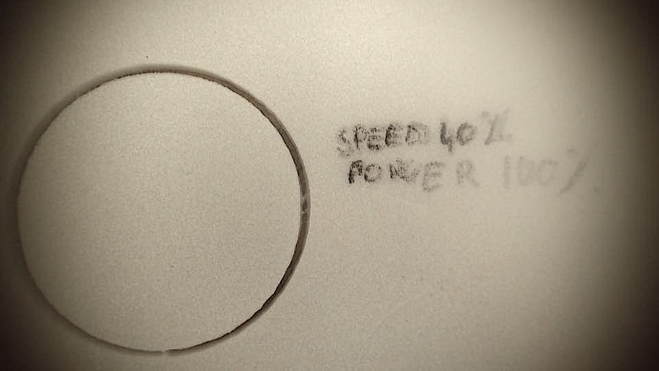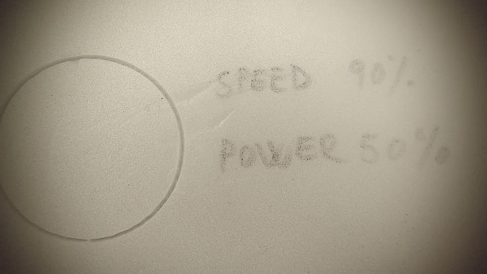 The laser machine settings to cut the DEPRON, an interesting, flexible material that can be cut with a laser-cutter; it has high reflective properties and has been used for the external wall.
