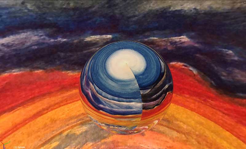 Next step of course was to use my own paintings as environment textures. At the top of the page you can see a glossy sphere reflecting such a painting.