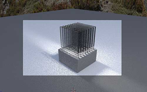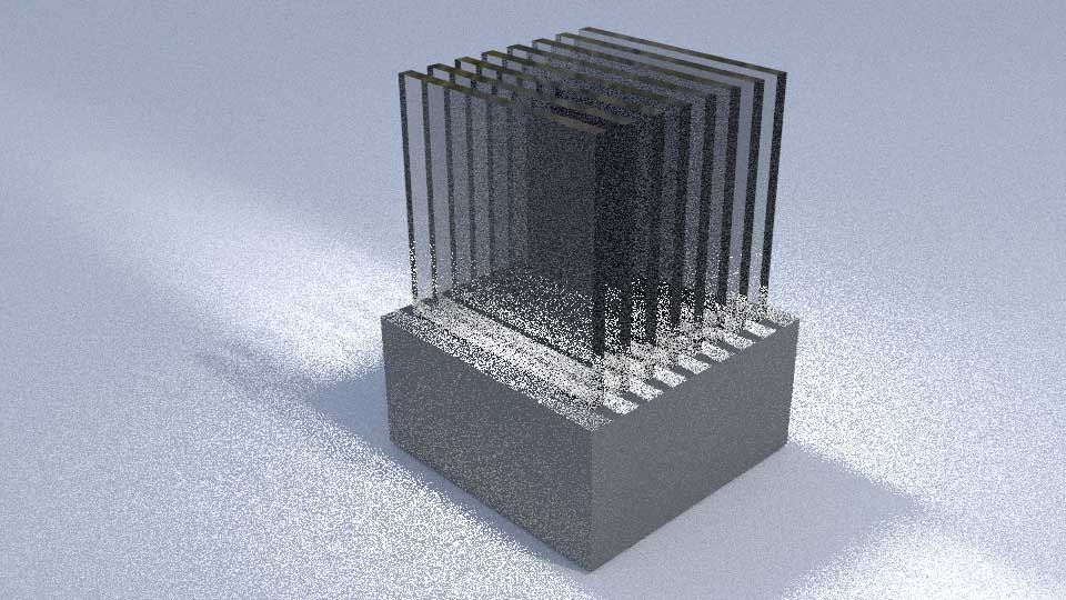 Above is a rendered version of my model using the Cycle Render. I added the light to illuminate the acrylic slides. The rendered version above took 300 cycles which took a fair bit of time... I left the computer for about 10 minutes.
