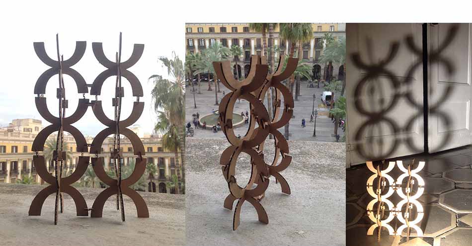 I lasercut out four symbols, though the laser didn´t cut through the whole of the cardboard. I passed the laser to repeat the cut, took it out and realised two shapes still hadn´t been cut properly. Well the fab lab was closing so I quickly cut them out by hand using a knife and carried them away with me.