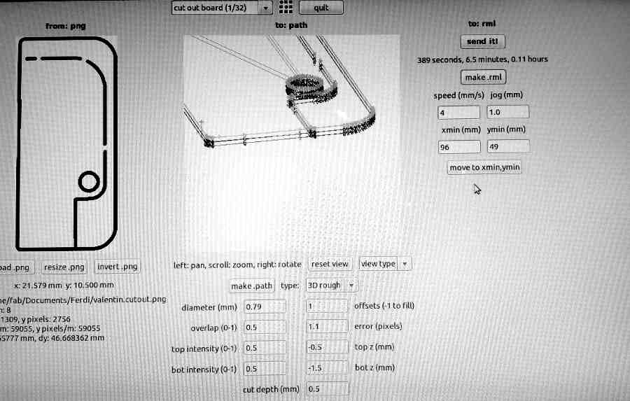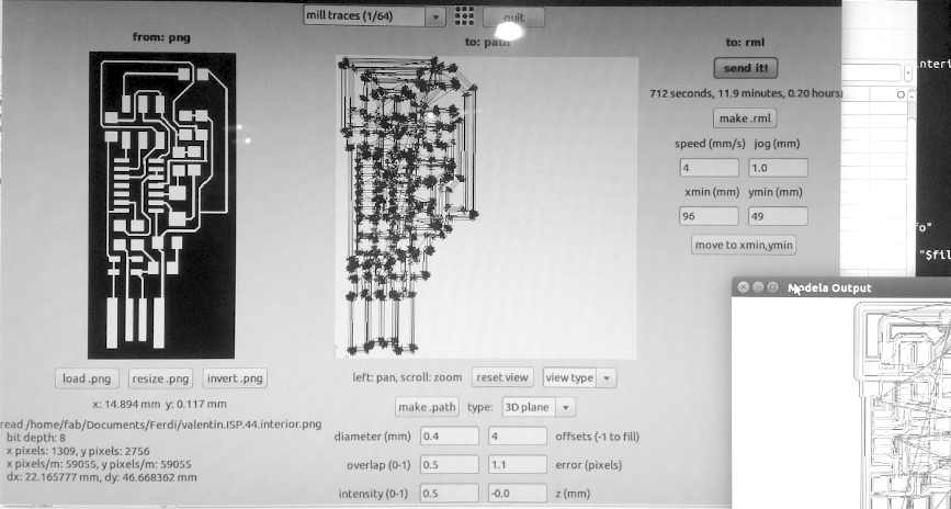 Next repeat steps 6 to 11, for the circuit board trace. I had to repeat the circuit trace because the first time the drill began to miss the board. Second time everything was milled correctly.
