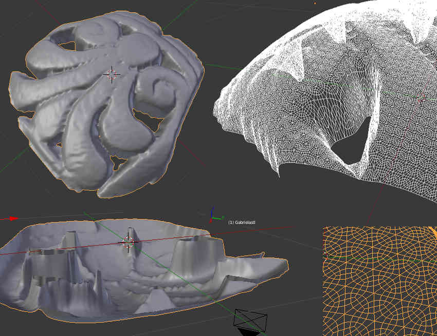 First thing I study the materials of the 3D printers, the patterns that are possible. If I export a file made in a 3D program like Blender, Rhino or SketchUp it will create a triangular mesh i.e. the surface will be made up of triangles, as you can see in the first image.