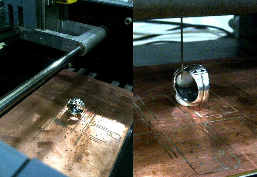 Turns out the Roland is a pretty useful machine. We changed the head so that it now carries a needle with a piezo crystal which is very sensitive. The needle lowers and upon contact with an object records the vector point.