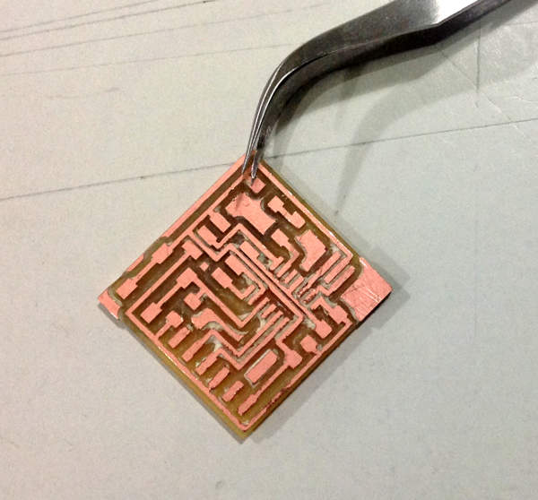 I started to scrape out the dust with a steak knife during a dinner meeting... later I switched to the appropiate tool- some tweezers. In any case I decided to remill the board. This time with very careful attention to how I set the z-depth.