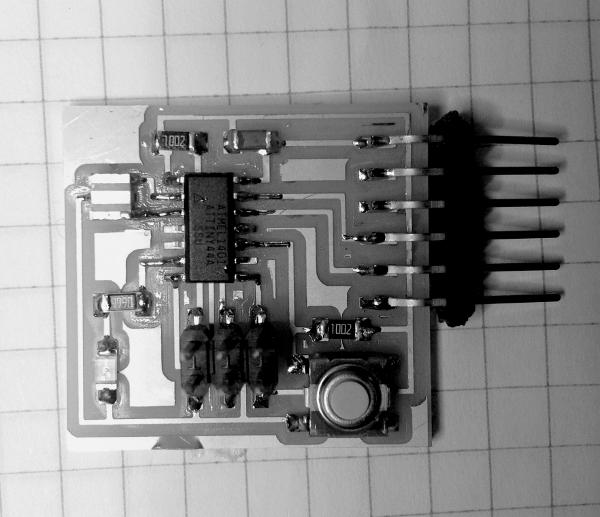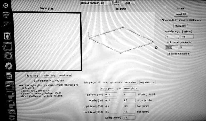 Third try on the milling machine and I managed to break the drill bit. Note to self- MUST RESET z-axis after changing the drill-bit for cutting. Also when traces the outline use offset one so it makes only one path to test the drill depth of the bit before making the interior trace. At any point View can be hit to put the machine in pause and resumed again with View button.