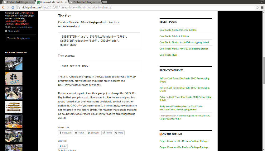 SUBSYSTEM=="usb", SYSFS{idVendor}=="1781", SYSFS{idProduct}=="0c9f", GROUP="adm", MODE="0666"And then: