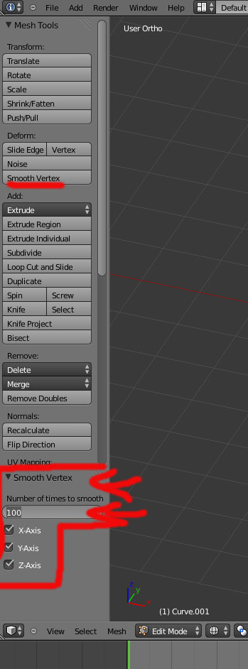 - smooth vertex, x 100, I do this 5 times (so x500 in total) to get a nice rounded shape.