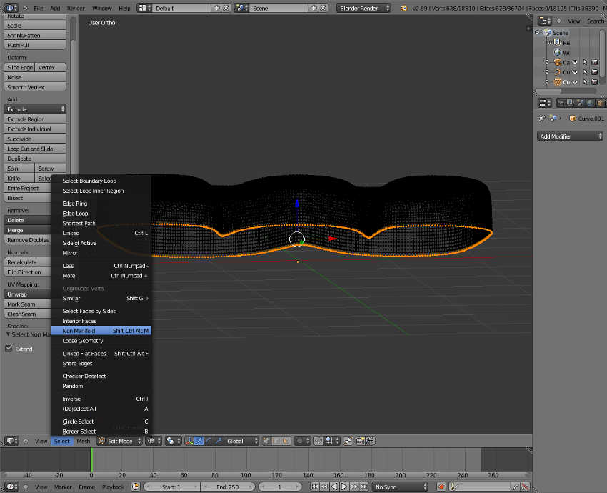Then importing as a .SVG file to Blender, I:
