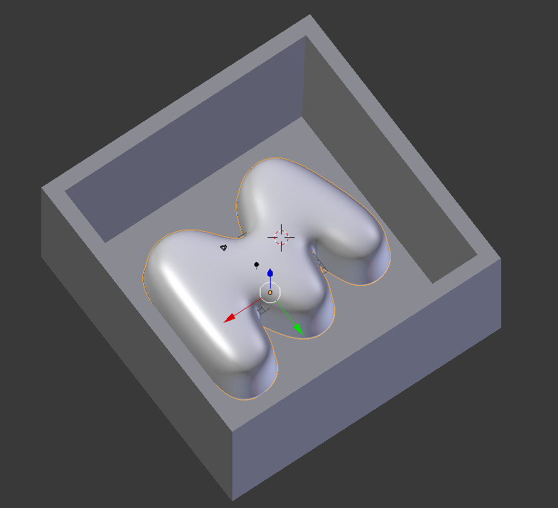 I used the Roland SRM-20 milling machine. I sent the .stl file to Modela Player 4. Unfortunately when I exported the .stl file, I forgot to "j" for join the box to the M shape, so only the M got imported. Fortunately the Modela Player 4 has options to create the box also. The box was adjusted to be a trapezoid, to ease the pulling out of the final mold.