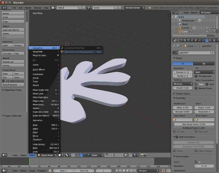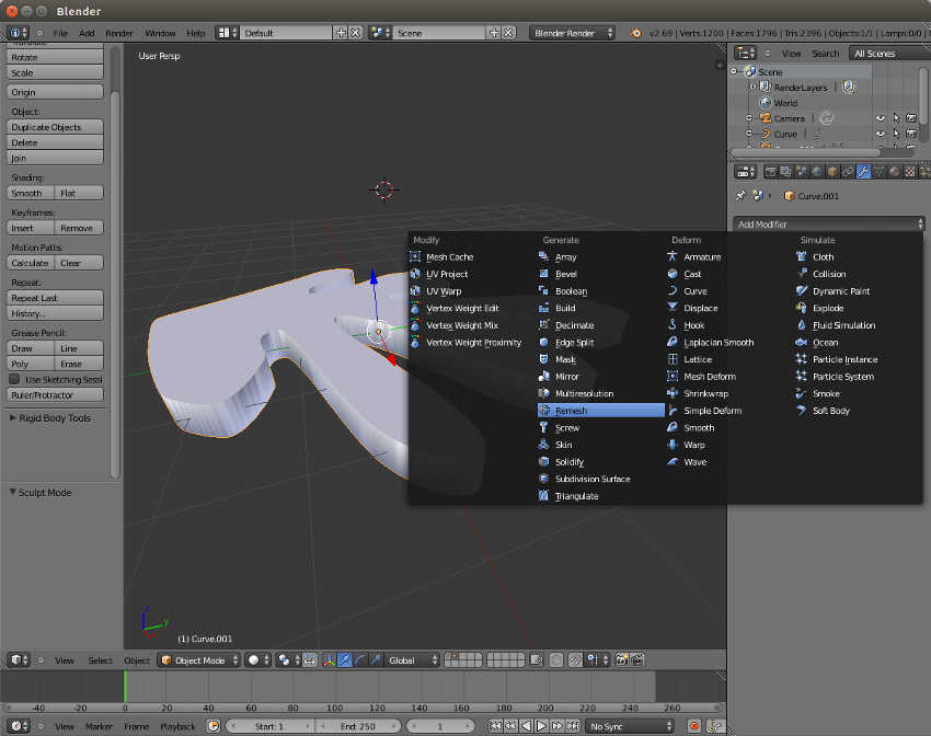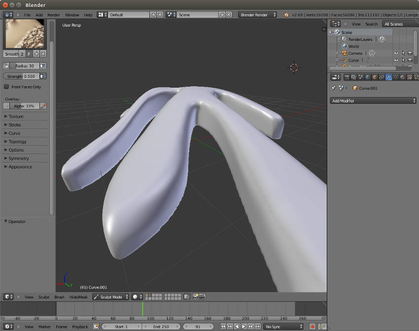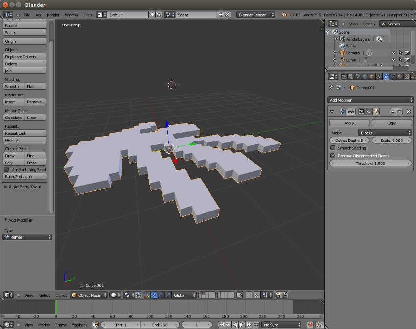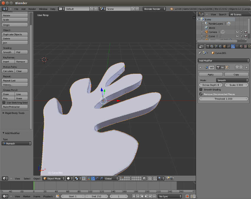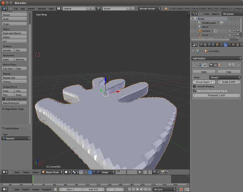 This week my inspiration was Henri Matisse. I took one of his cut out forms converted it to an indexed image in Gimp, vectorized it in Inkscape and sculpted it into a 3D model using Blender.