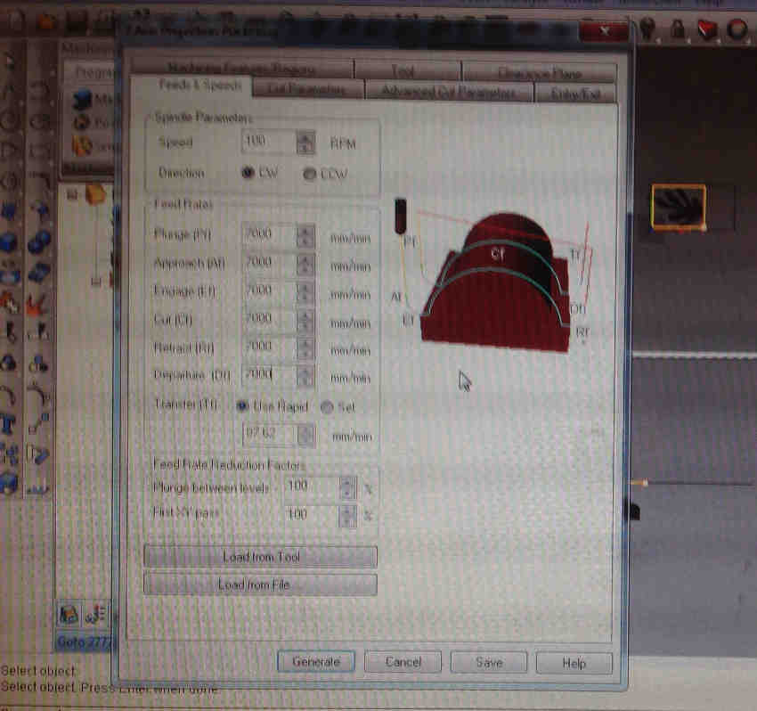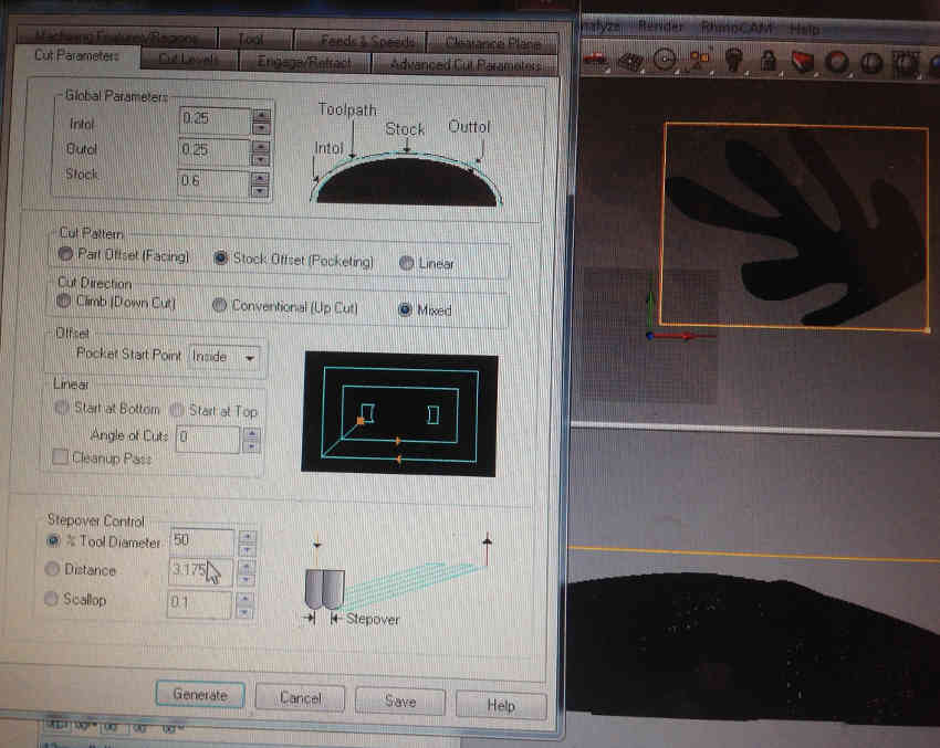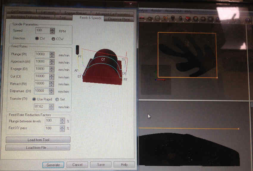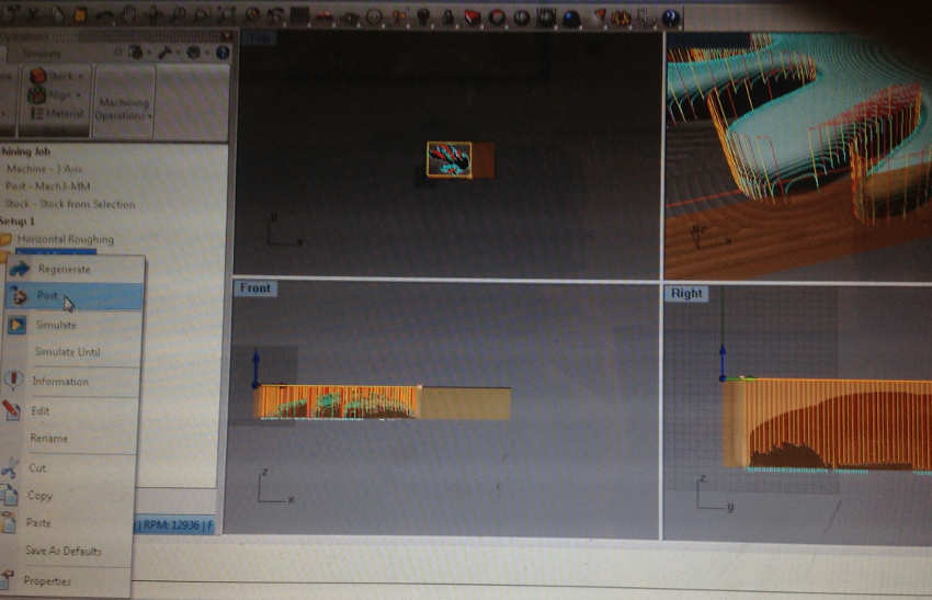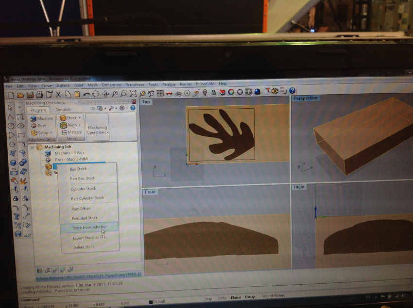 I measured my polystyrene block and created a block in RhinoCam. I selected the block as my Stock Material using the option Stock from selection . Then I deleted the block.