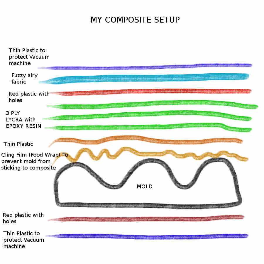 On recommendation by Anastasia from the Fab Lab Barcelona I used Lycra as my fibre. The resin was Epoxy Resin.