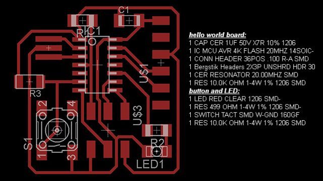 - redraw the hello world board by first choosing the parts from the library and placing them in the schematics window.