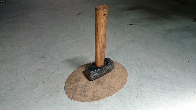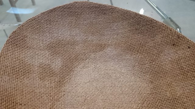 first i put some thin plastic film on the mold to make sure everything will be easily removed from the mold. when the mix started to feel like glue i applied it onto the burlap and then everything on the mold. two layers where enough in my opinion.