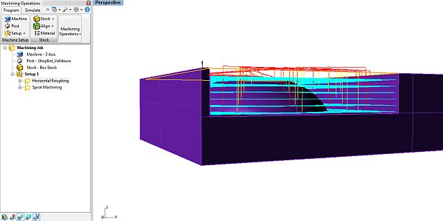 roughing, where most of the material is being removed and the milling bit moving in only two axis, going down in steps, in this case six.