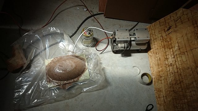 after no glue was left i put it into a plastic bag and attached the vacuum pump with doublesided tape and started the process.
