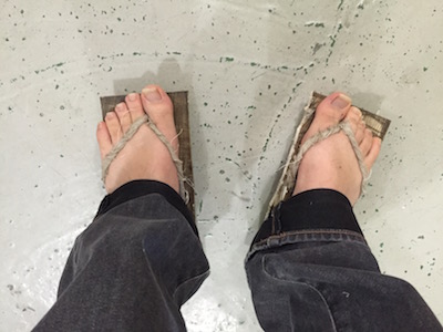 Actuallly I didn't have any clues what I should make with fiber materials on that wednesday. It's first time for me to make fiber materials and the process is really complex. But after seeing some last year's assignments, I understood bascially it can make the materials be stronger than before. So it's good for using thin wood, banboo and something like thin stuff. For the assignments, first I wanna make a hat with linen, but after my friend's result of composites, I tought it's not good material for hat, so I changed it to a pair of sandals. Also I didn't want to make normal (boring) sandals, so I tried to make my own sandals based on Japanese sandals (Geta).