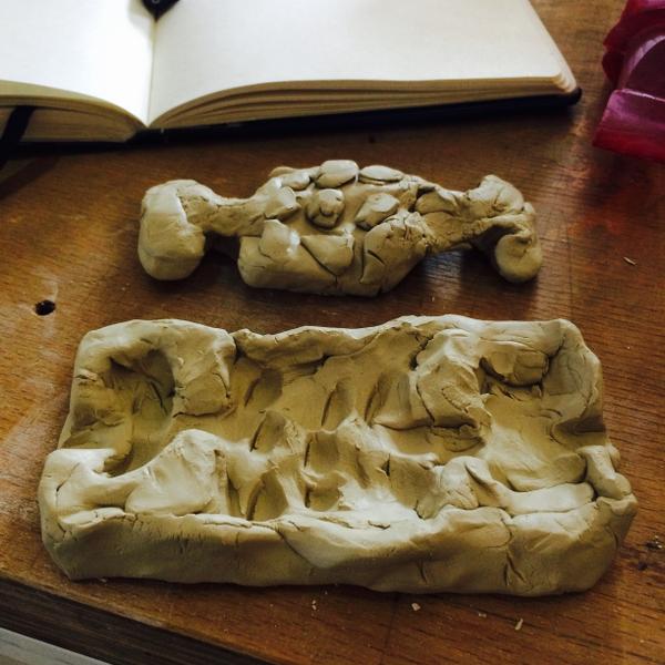 Since I am making modular parts that have to be casted into one another to reach the length of 185cm (which means 14 casts...), I designed a 'joint' that will make the connection between the modules stronger. I got very confused during the process though, and eventually had to quickly prototype the mold and the part in clay, so I could understand what I was doing again. Then it also became clear that one of my joints should be inverted. I also consulted Mickael about another thing; as soon as the first object is cast, it looks like the 'masculine' joint should be cut from the mold, to make room for inserting the end of the first object, so it can be joined with the second. As it looks like this is the case, I will cast two rubber molds, one of which without that joint.