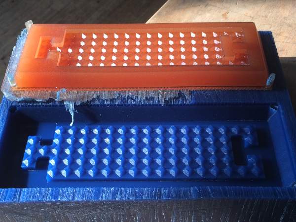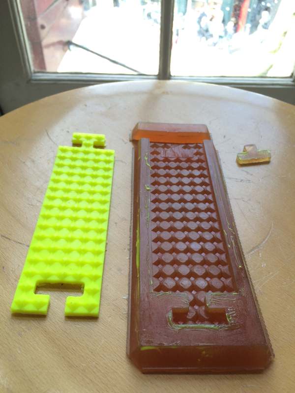 Apr 15 / The effect of the two silicone parts cast together is super nice. You can hardly see where they are joint together, but if you hold it to the light, the T-shape joint inside becomes visible: