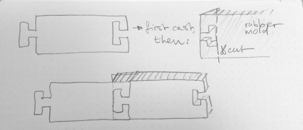 Apr 10 / The rubber mold looks really nice. I placed it into the convection oven for two hours to gain sturdiness and poured a second rubber mold, so I can use one to cut the joint off and still have the original mold too.