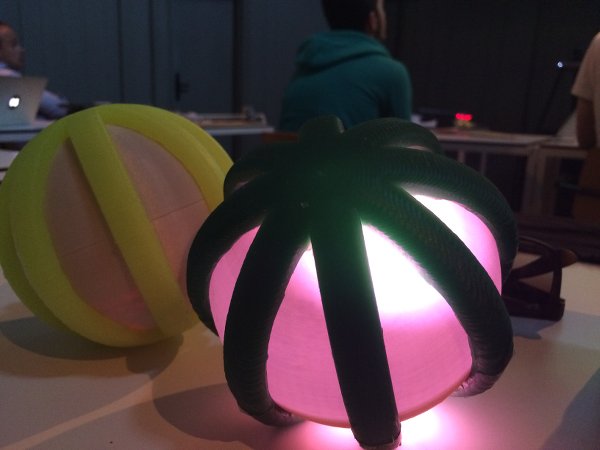 The plan for my final project is to design and develop two kid-proof balls that communicate via radio chips. Through gesture control (accelerometer), each ball can generate light, colour and vibration in the other ball (RGB LEDs, speaker). For the youngest children, it will most likely be enough to see, feel, hear the ball that is changing color or vibrates, for the older toddlers it's possible to really find out which gesture generates which reaction, and play with that. I'm planning to 3D print the balls and add kid-proofness by designing a soft silicone cover that will keep it closed and shock-protect the electronics inside (to a certain extent).