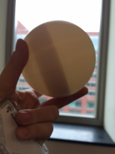 I printed a first small prototype of the balls I intended to use (two half spheres that screw together) already in the last week of April. After my failed attempts at designing my own screw threads in Rhino (see week 5), I looked for a design with screwthreads that I could adapt for my purpose. I found a really nice sphere screw box by Jamie Laing on Thingiverse, that I scaled to what I then thought would be about the right size. I printed the balls in ABS on the Dimension printer at Amsterdam University of Applied Science and started to experiment with sound, vibration and light inside the balls.