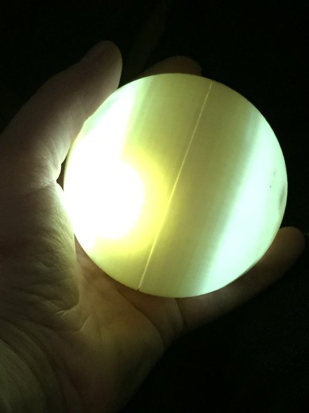 I adapted the design so that outside of the screwthreads, the ball was empty inside, with 1.5mm thin walls, which let a lot more light shine through (the middle screenshot).