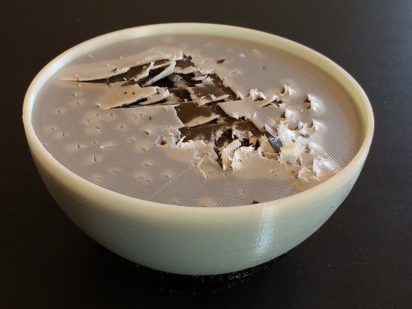I did this for both halves, meshed them and checked the meshes in Netfabb. All looked fine. But when I removed the two halves from the printer, they were completely filled up with layers of support and ABS. I began to remove it but it was no use. Unfortunately, time was running out and I decided to go with the second (middle) version of my balls.
