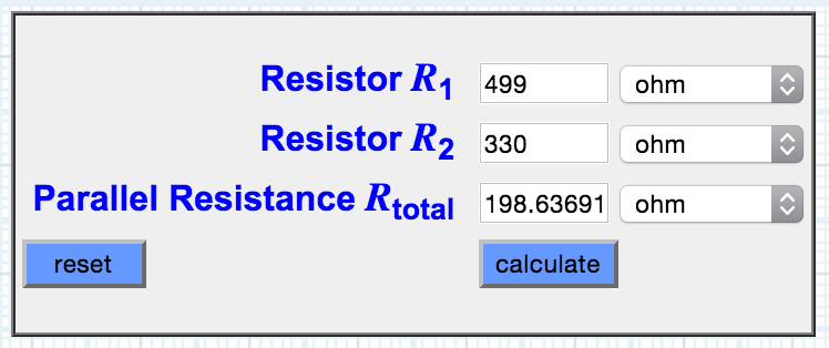 R(blue and green leds) = 1.5 / 0.02;