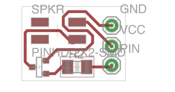 On the breakout board for the speaker I added a transistor to amplify the sound (as it will sit in a closed box) and a 100 Ohm resistor. It will be connected to VCC and ground of the Arduino.