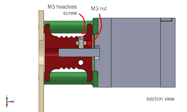 To fix the rolls on the motors, I designed a common system with a nut and a headless screw: