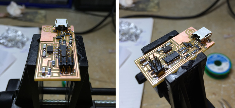 After soldering process I took risk because I pluged the board directly to my computer USB port, and after that I discovered that if something was wrong I could burned my board or my computer. Fortunately everything was fine, and my board is working. So, I did the tutorial for programing in MAC and I had one problem with Xcode installation, it didn't work in my computer. Then I decided to start programing without the Xcode to see what would happen, and what happened was when I did "make clean" command it asked for a software to be able to make the command and also asked if I would like to install it. I chose YES and after a few minutes it was done and I could finish the programing without problems.