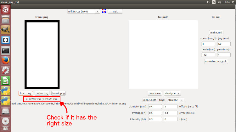 So I made two modifications in PNG file with the milling traces, first I changed the MIT logo to my logo, and second I removed the white border to reduce the milling time because this trace will be cutted in a second step. Here's the result: