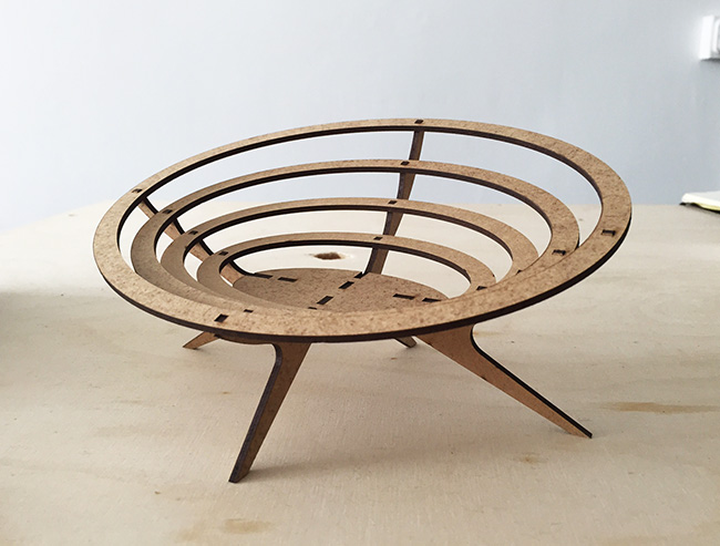 After finish the first version of the chair I saved each part as DXF file to scale and cut it on Laser with 3mm MDF just to evaluate a prototype before use my final wood sheet. As I chose a 21mm wood sheet to make the final chair and I had a 3mm MDF to prototype I scaled it in a 1/7 ratio.