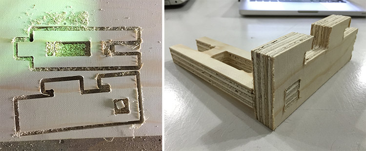 Software used:For this project I'm using a 20mm Fir Plywood. The next step was to make some tests with my joints. I designed two pieces that basically has all the joints that I need to test.