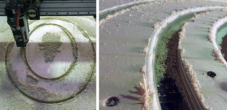 This tool doesn’t have a cutting edge to get in the material, so I made some offset cuts to open space for the tool. Then I created a new tool in RhinoCam using a caliper ruler to take the dimensions. After some tests using this tool in Shopbot, I realize that I should use on the cut strategy the same cut depth of the tool, otherwise the RhinoCam doesn’t make it right